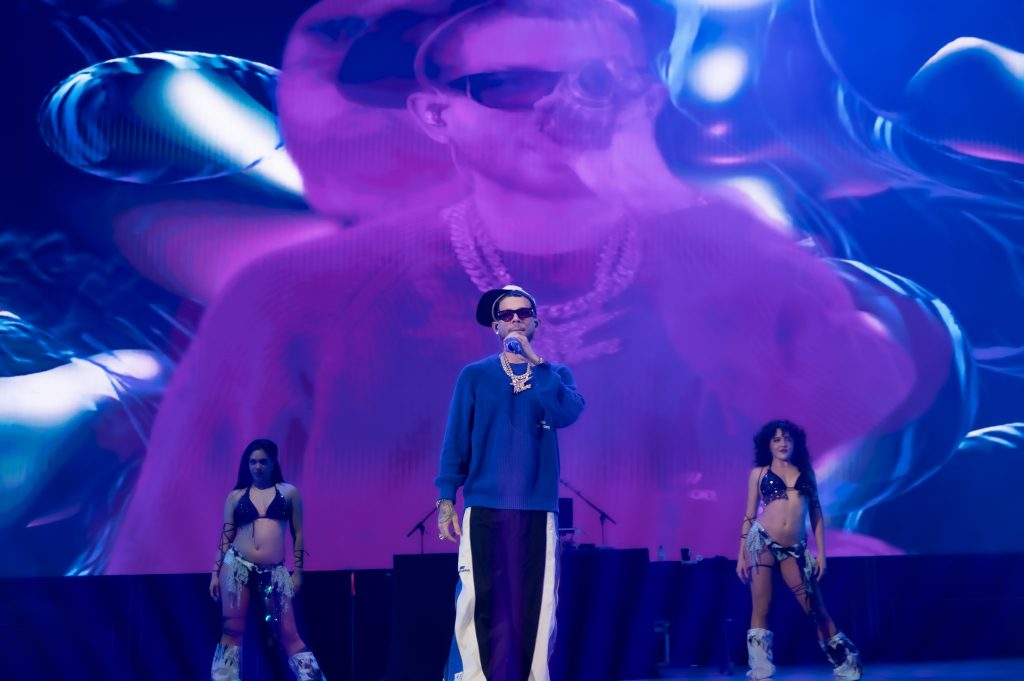 Desde que se apagaron las luces, el ambiente dejó claro que el público venía con ganas de perreo. Pantallas gigantes, efectos visuales inspirados en el universo acuático de su último proyecto y una base de beats contundentes marcaron el inicio de un espectáculo pensado para el directo.