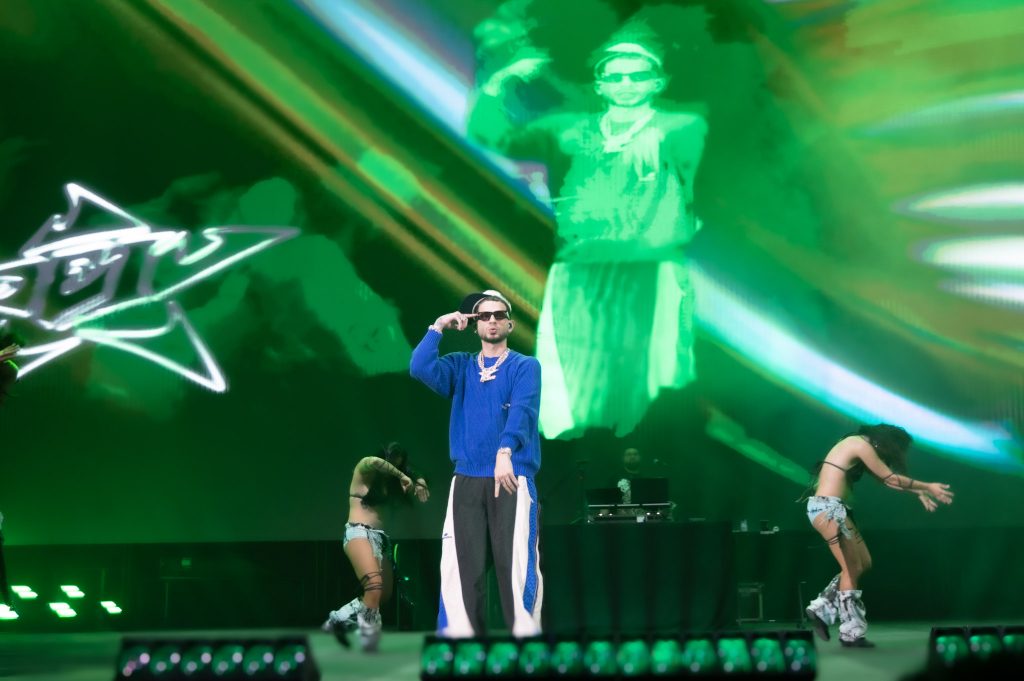 Durante el concierto hubo momentos de interacción constante: pausas para que el público cantara los estribillos, referencias a la cultura urbana y guiños al movimiento del reguetón latino.