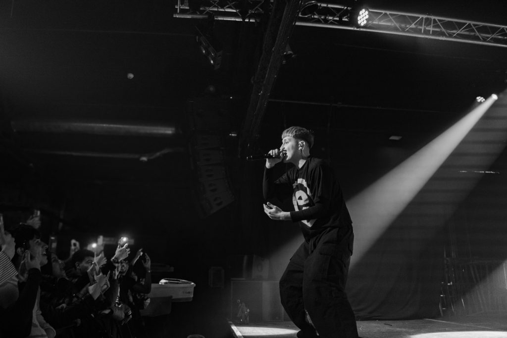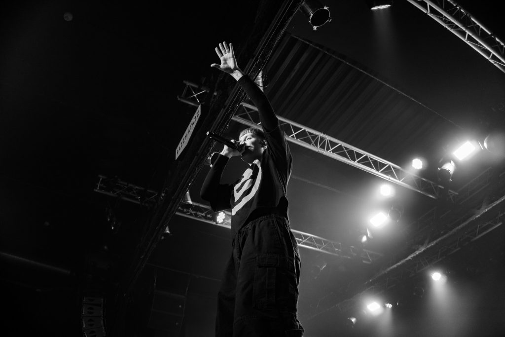 La conexión con el público fue constante: miradas, gestos, pequeños rituales improvisados. No era un artista interpretando un concierto; era un guía llevando a la sala por un viaje compartido. Y Razzmatazz, convertido en templo temporal, respondió con saltos, gritos, teléfonos alzados y una energía que no decayó ni un segundo.