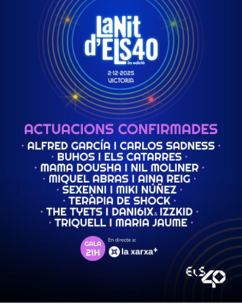 La gran fiesta de la música catalana vuelve el 2 de diciembre a Barcelona con una nueva edición de La Nit de ELS40, que este año se celebrará en el Teatre Victòria, un escenario emblemático que acogerá a los artistas, grupos y canciones que han marcado en 2025. Además de reconocer el talento musical con los Premios CAN40, esta edición será especial por la solidaridad: los beneficios de las entradas se destinarán a la Fundación Cabo Niño Sin Juguete, que trabaja para garantizar que ningún niño se quede sin regalo estas Navidades. Consigue tu entrada solidaria aquí por sólo 5€ gastos de gestión incluidos.